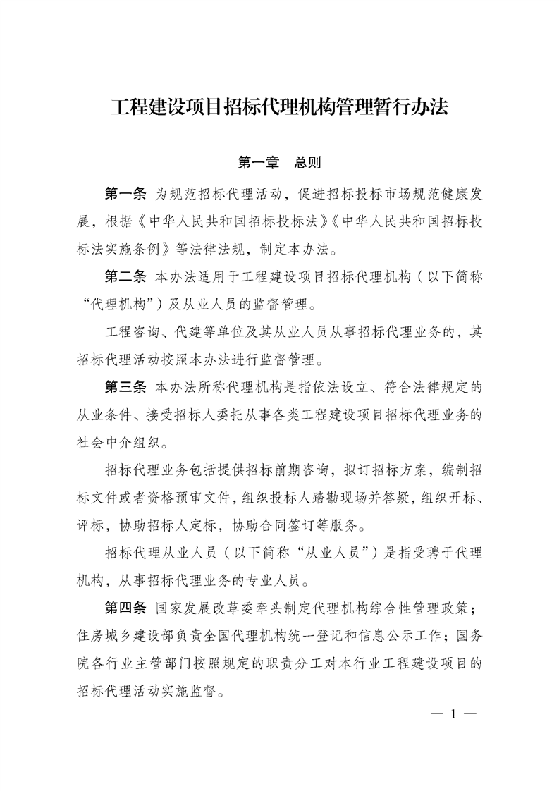 转发《工程建设项目招标代理机构管理暂行办法》2025年第34号令