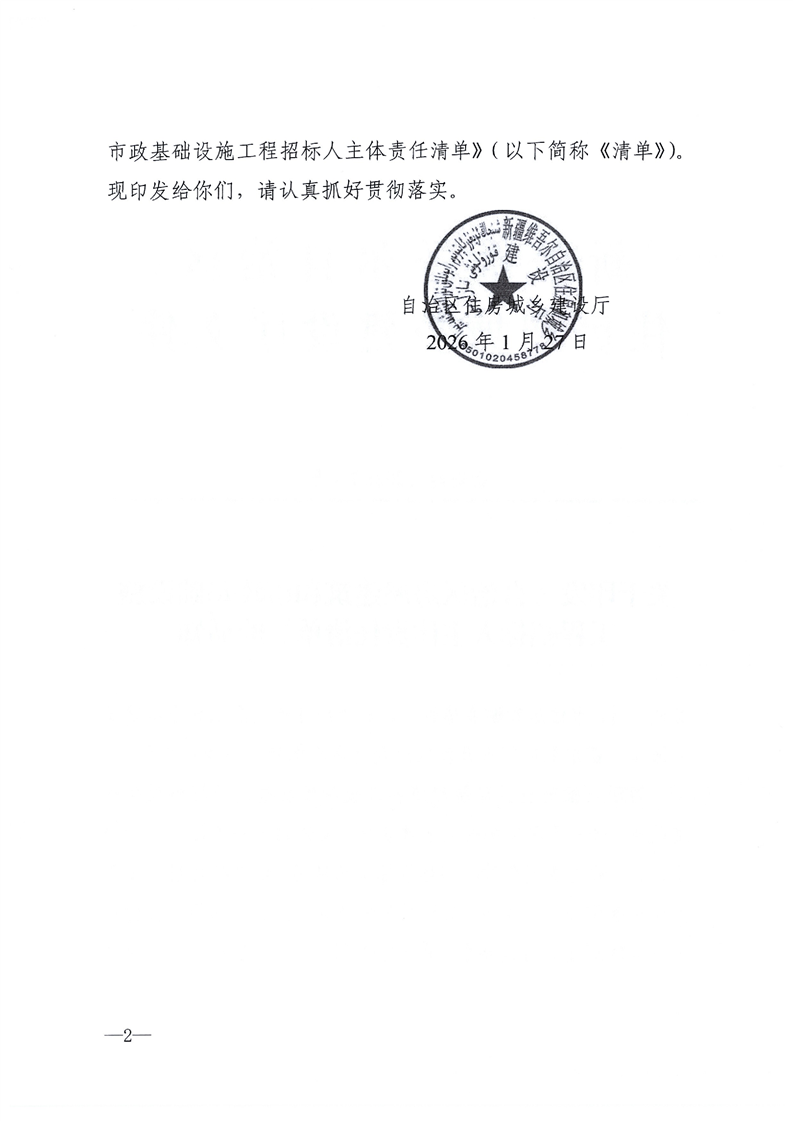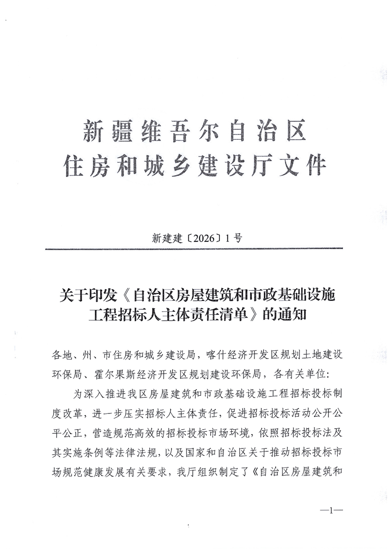 关于印发《自治区房屋建筑和市政基础设施工程招标人主体责任清单》的通知